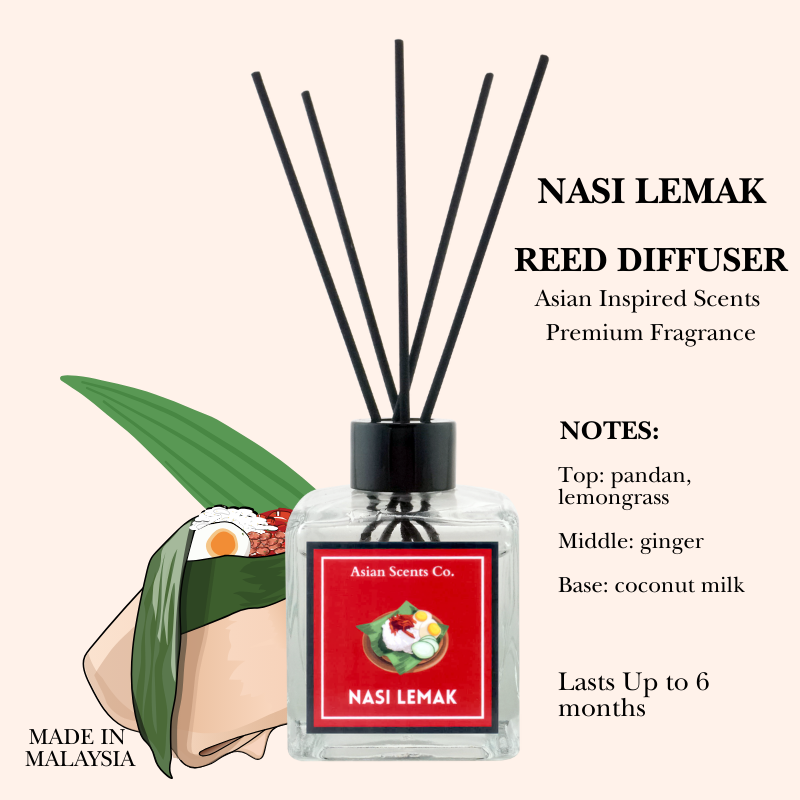 This scent is inspired by our beloved Malaysia's national dish "Nasi Lemak" ingredients infused with lemongrass, pandan, ginger, coconut milk